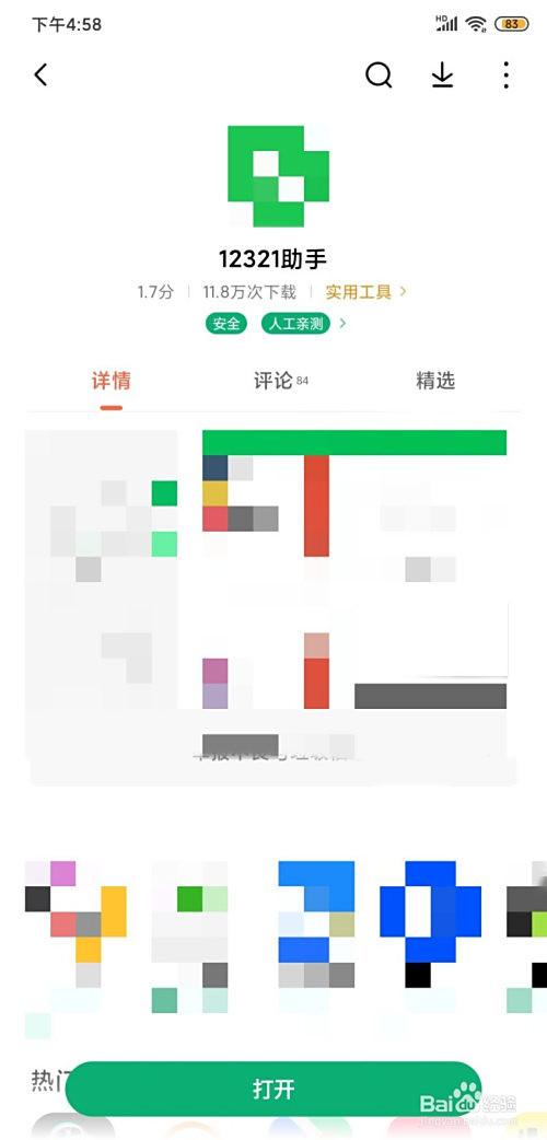 手机应用商铺或浏览器下载安装“12321举报助手”后打开;