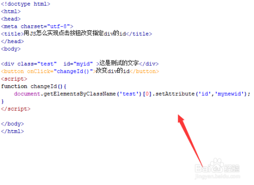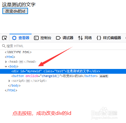 2、在js中,经由过程class获得div对象,再利用setAttribute()方式改变id值为mynewid。