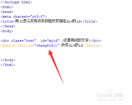 在test.html文件内,利用button标签建立一个按钮,给button按钮绑定onclick点击事务,当按钮被点击时,执行changeId()函数。