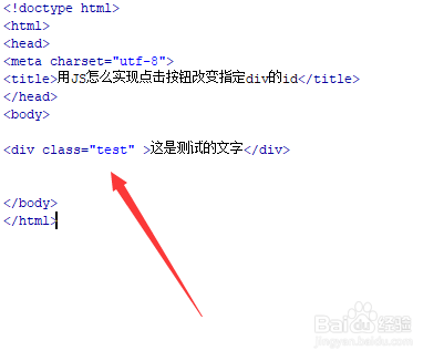 新建一个html文件,定名为test.html,用于讲解用JS怎么实现点击按钮改变指定div的id。
