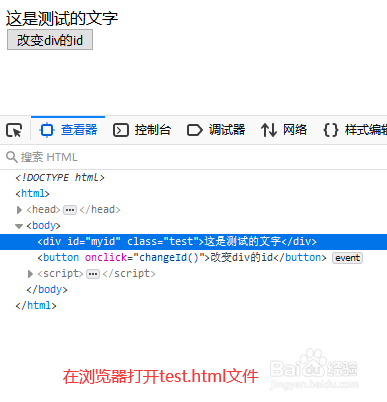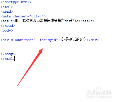 在test.html文件内,设置div标签的id为myid,下面将利用js方式改变该id。