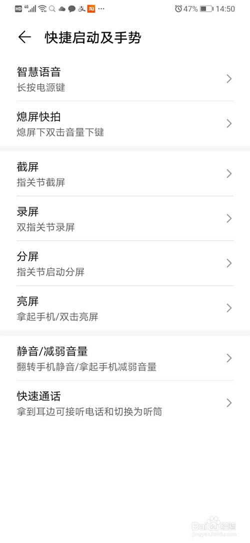 进入之后,里面有一个快捷启动及手势选项,点击一下进入。