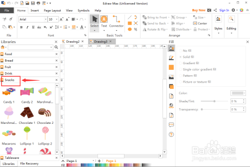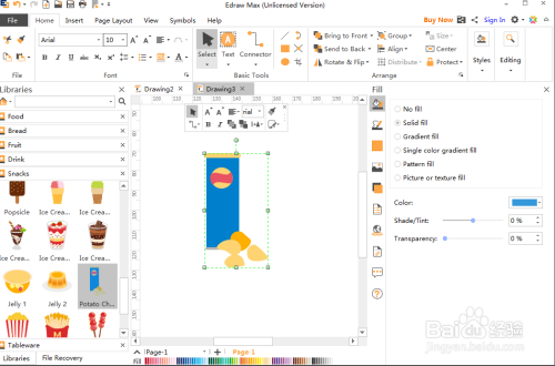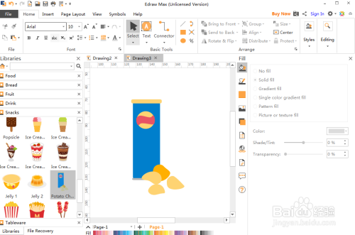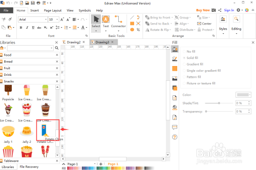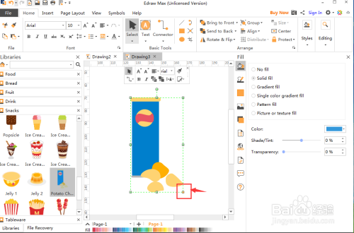 3、找到薯片,用鼠标将它拖放到编纂区中;