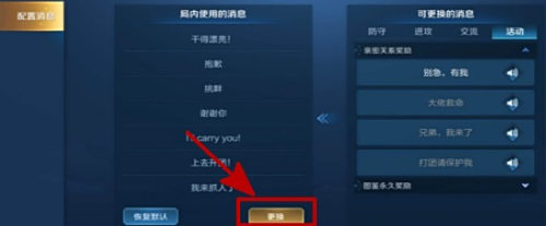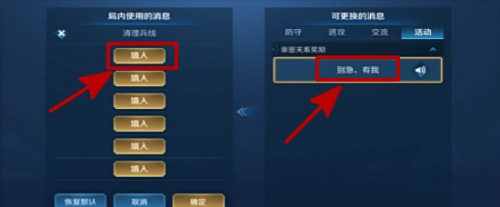 第三步,在可改换动静中,点击【勾当】,找到“别急,有我”语音