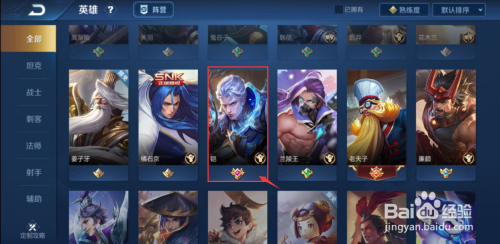 点击英雄选项按钮,再在里面找到需要查看的英雄。