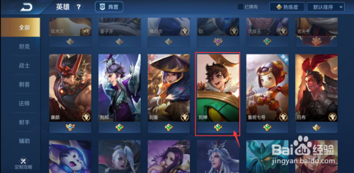 点击英雄选项按钮,再在里面找到需要查看的英雄。