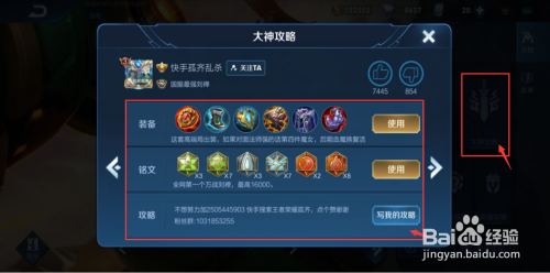 再点击介绍里的进阶信息,可以看到大神攻略,里面有相关的装备和铭文的保举。