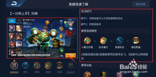 点击介绍里的短视频,可以看到英雄的视频介绍和相关的弄法技巧。
