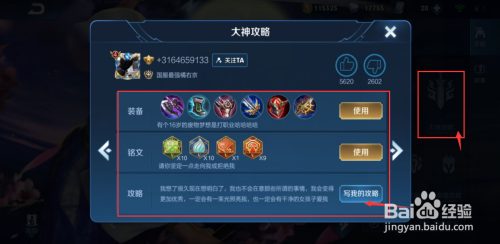 再点击介绍里的进阶信息,可以看到大神攻略,里面有相关的装备和铭文的保举。