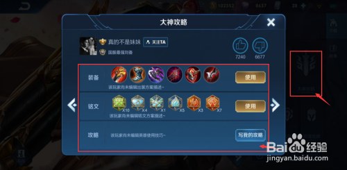 再点击介绍里的进阶信息,可以看到大神攻略,里面有相关的装备和铭文的保举。