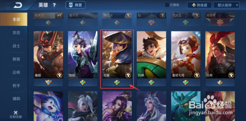 点击英雄选项按钮,再在里面找到需要查看的英雄。