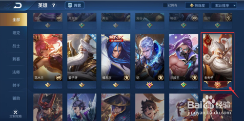 点击英雄选项按钮,再在里面找到需要查看的英雄。