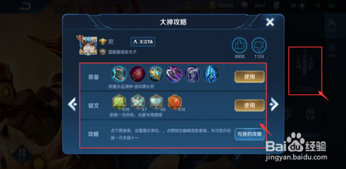 再点击介绍里的进阶信息,可以看到大神攻略,里面有相关的装备和铭文的保举。