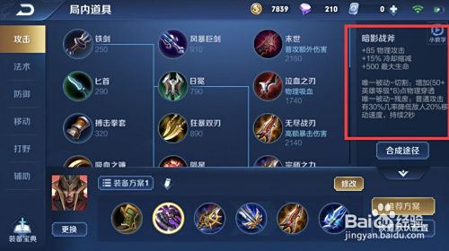 第二件,我们选择“暗影战斧”提高物理穿透和削减技术CD