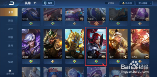 点击英雄选项按钮,再在里面找到需要查看的英雄。