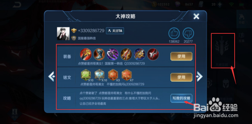再点击介绍里的进阶信息,可以看到大神攻略,里面有相关的装备和铭文的保举。