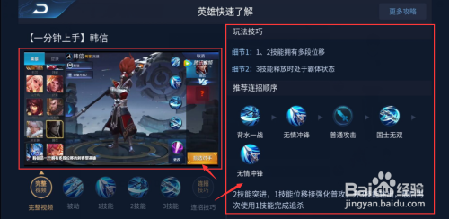 点击介绍里的短视频,可以看到英雄的视频介绍和相关的弄法技巧。