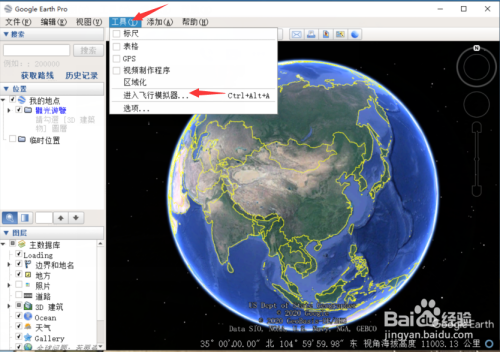 下拉,找到【进入飞翔模拟器】,也可经由过程键盘快捷键Ctrl+Alt+A键进入。