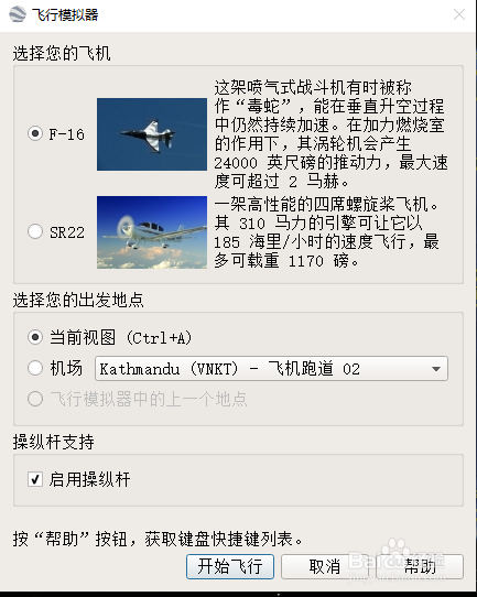 这里需要选择飞翔机型,有战斗机和螺旋桨客机两种。