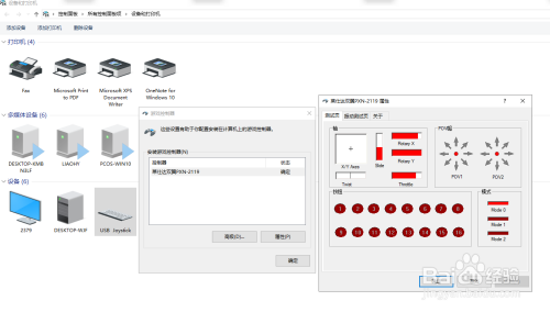 2.电脑端测试界面去测试飞翔摇杆按键,测试按键正常没问题就开启游戏进入。