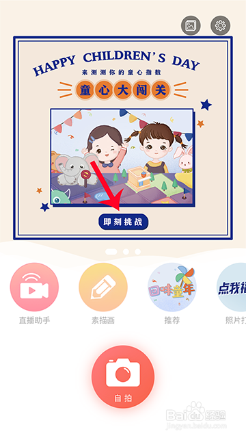 进入无他相机后,选择“童心大闯关”下方的“即可挑战”。