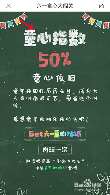 回覆完毕后,呈现本次闯关的童心指数,就可以了。