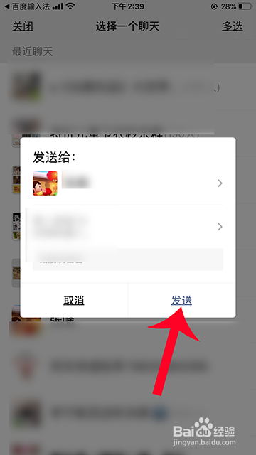 5.选摘要分享到的软件,选择软件的老友,点击“发送”即可。