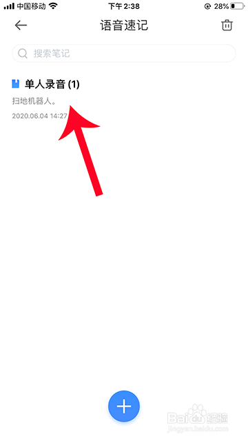 打开语音速记后,选择笔记内容打开。