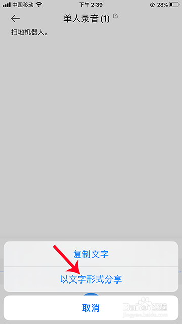 4.选择“分享”,再点击“以文字形式分享”。
