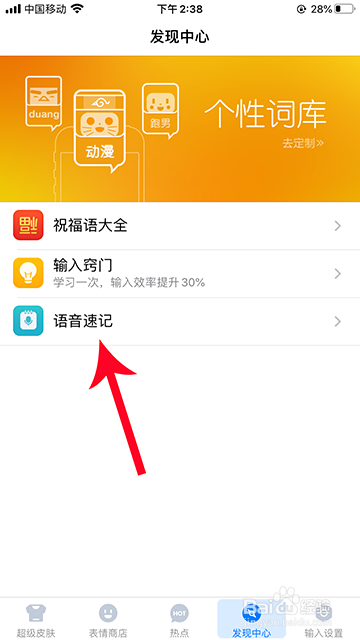 进入发现中间后,选择“语音速记”打开。