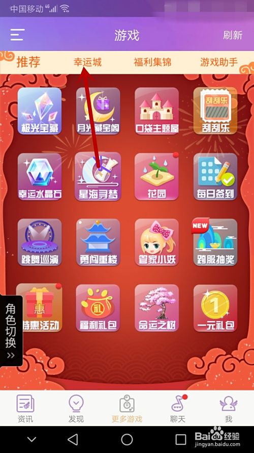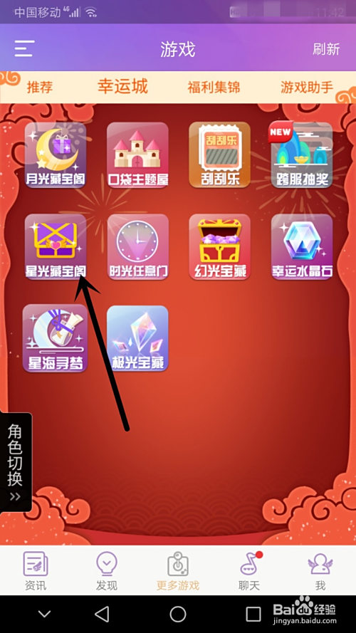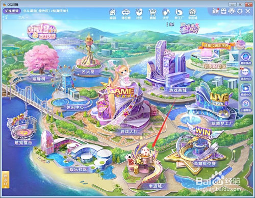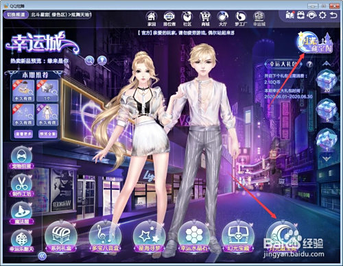 加载完毕后就会进入下图的界面,然后点击‘幸运城’,就能看到‘星光藏宝阁’了。