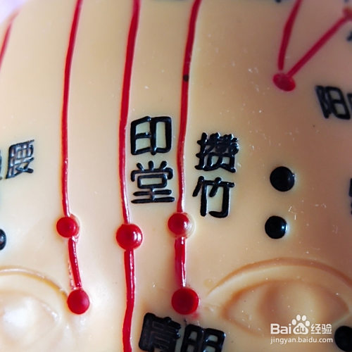 然后我们再眉骨中心的位置找到印堂,这里点按或者揉两到三分钟。
