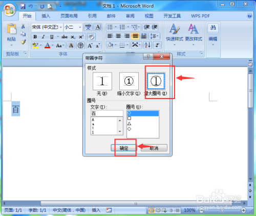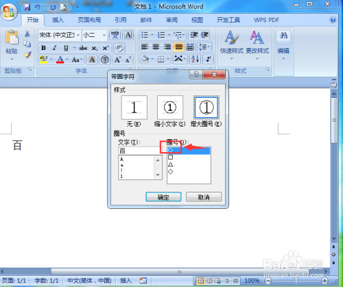 在带圈字符对话框中选择需要的圈号;