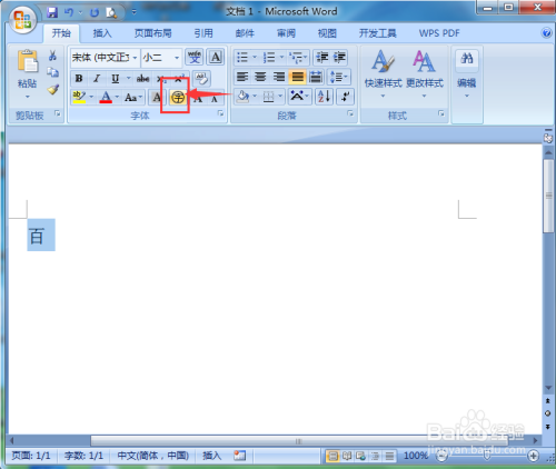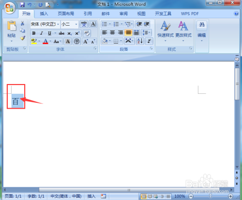 在百字上拖动鼠标,将其选中;