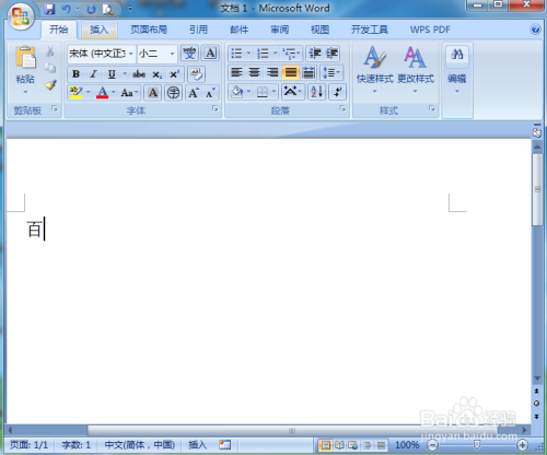在空白页面输入一个需要的字符,如百字;