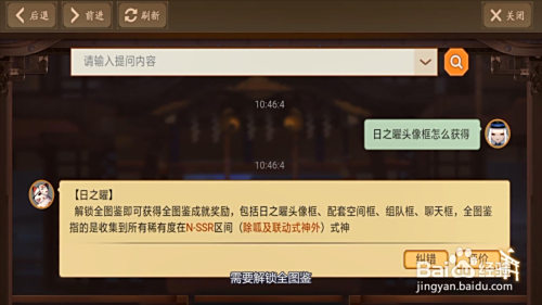 获得日之曜头像框,需要解锁全图鉴,全图鉴不包罗联动式神和呱。