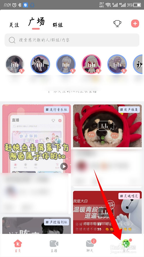 开启隐身进入直播间功能,先打开底部的本身页面。