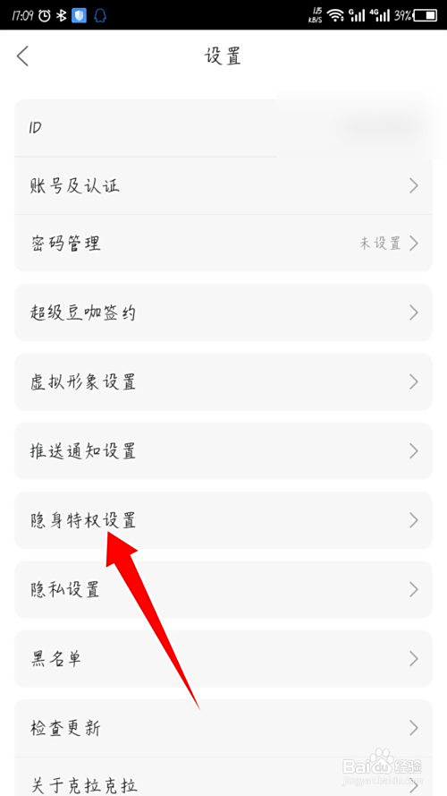 在设置里面,就能看到隐身特权设置选项了,点击进入。