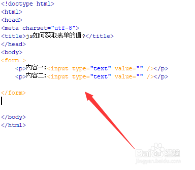1、利用form标签建立一个表单,在表单内,利用input标签建立两个输入框。