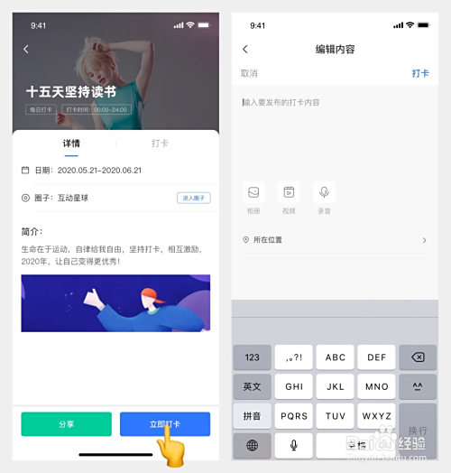 填写打卡勾当的相关信息,确认无误后即可发布(撑持后续点窜);互动星球的打卡功能本家儿要以话题形式为本家儿,用户介入打卡时需发布相关的内容,圈本家儿可对打卡进行相关的指导描述,说明本次打卡的本家儿题详情。
