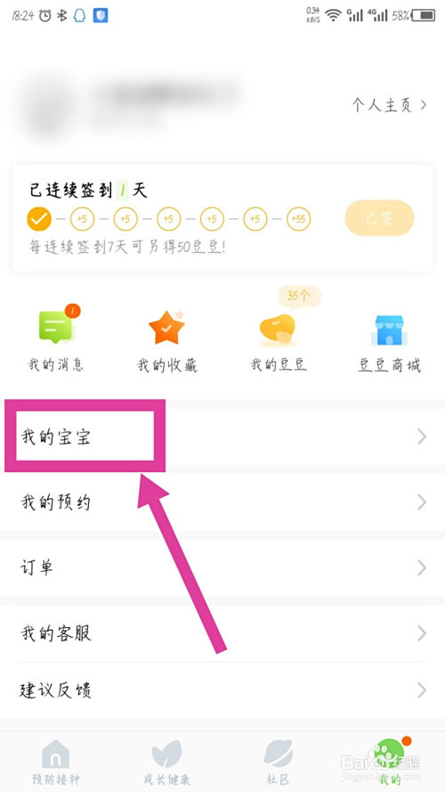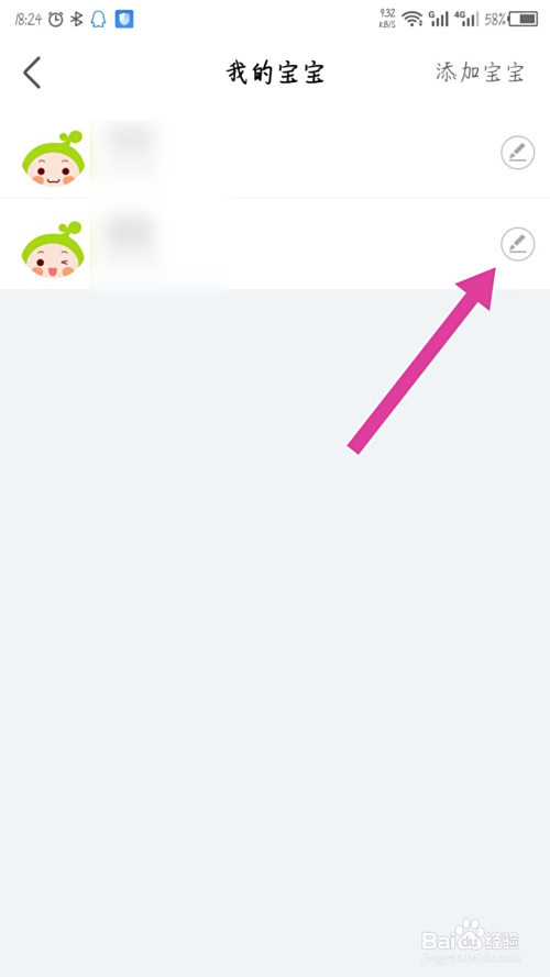 然后在打开的我的宝宝页面,点击宝宝后面的铅笔图标。如图所示