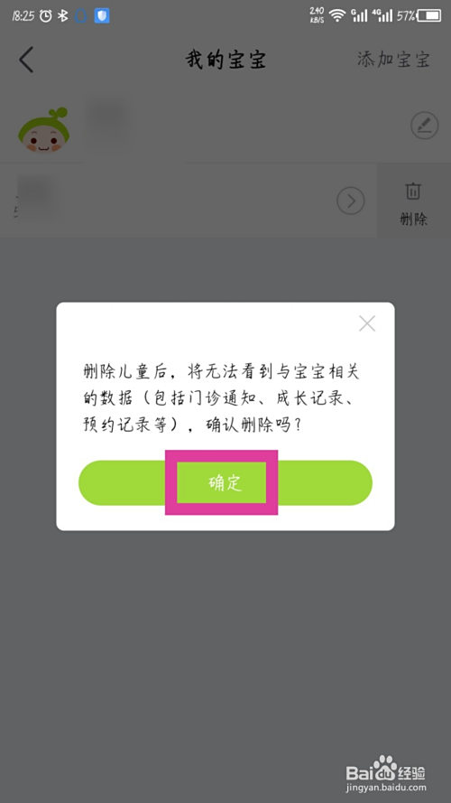 在弹出的窗口中,点击确定,就可以删除宝宝了。如图所示