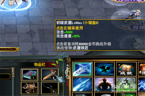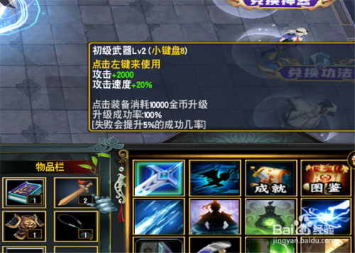 而当我们进入练功房,有了必然的金币之后,直接点击我们的装备。