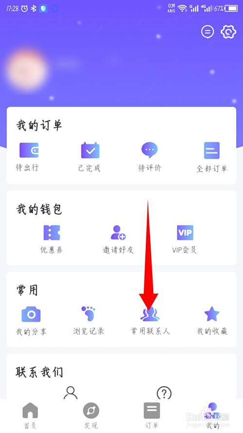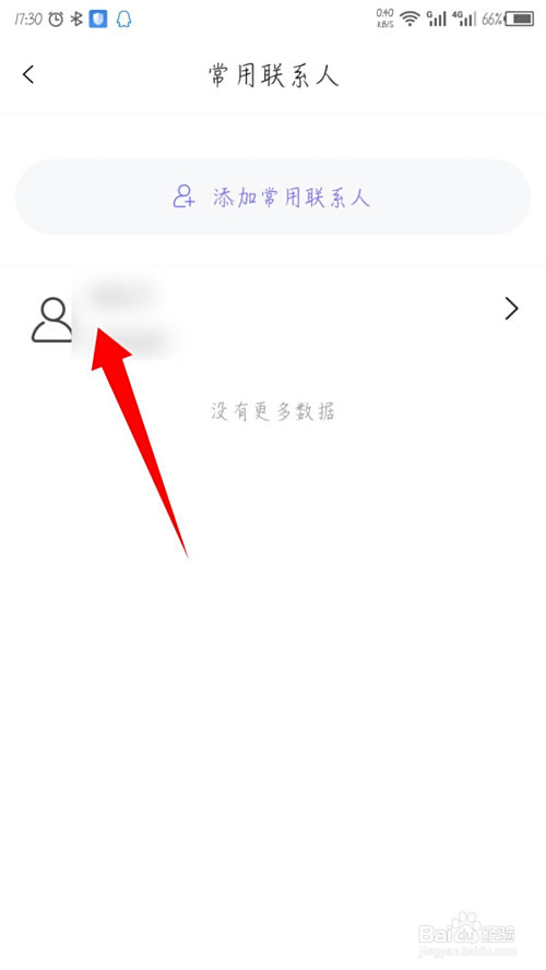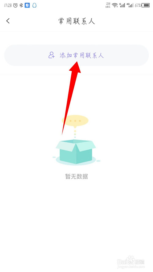 在打开的常用联系人页面,点击添加常用联系人。如图所示