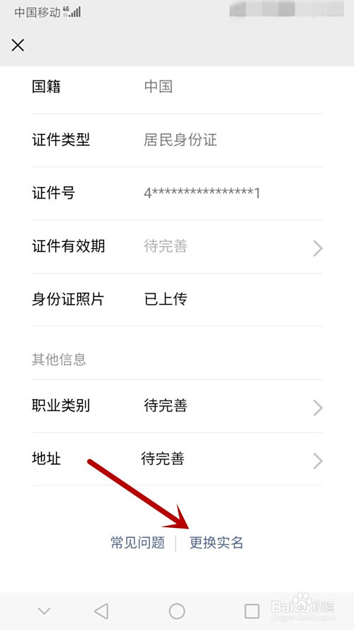 跟着在认证界面,下拉到底,选择【改换实名】。