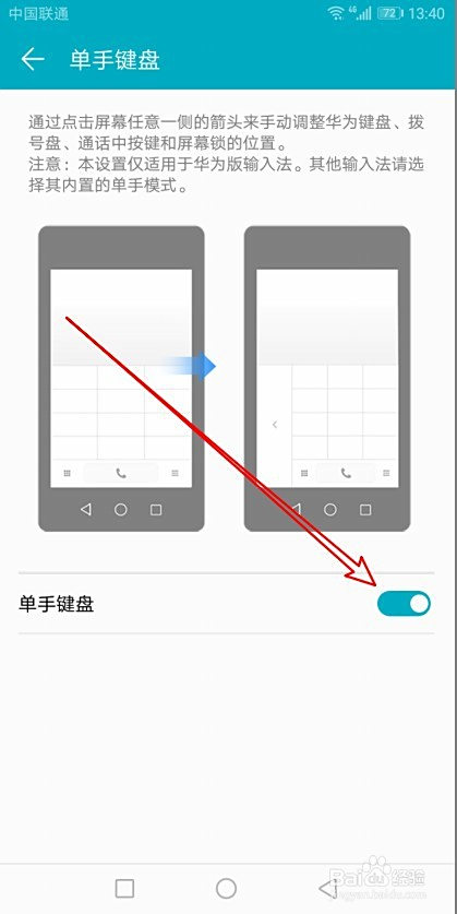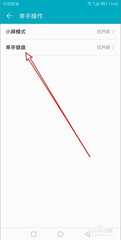 在打开的单手键盘页面,找到单手键盘的设置项,点击封闭该设置项后面的开关就可以了。