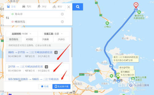 前去嵊泗列岛的线路就出来了。