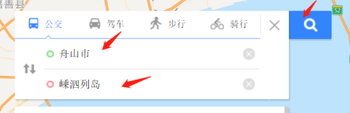 输入肆意出发地、然后输入目标地“嵊泗列岛”。点击搜刮图标。