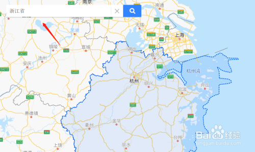 在搜刮框输入“浙江省”,将地图定位到浙江省。