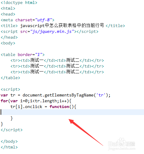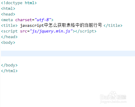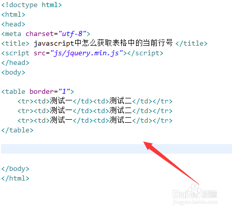 新建一个html文件,定名为test.html,用于讲解javascript中怎么获取表格中的当前行号。